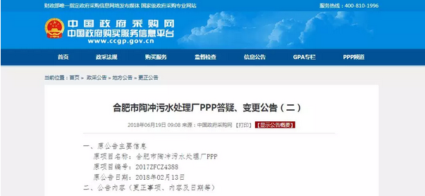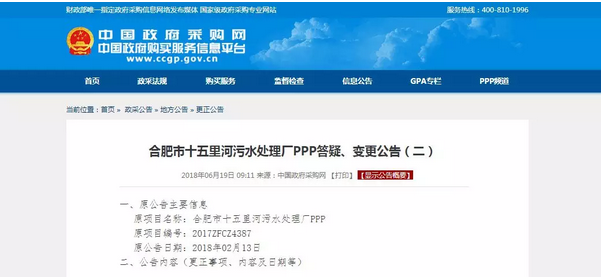近日,備受關(guān)注的合肥市十五里河污水處理廠、合肥市陶沖污水處理廠兩大PPP項(xiàng)目同時(shí)發(fā)布答疑、變更公告,將開標(biāo)時(shí)間(投標(biāo)截止時(shí)間)變更為2018年7月10日9:30。距離原定開標(biāo)時(shí)間過去2個(gè)月,這兩大污水廠即將再次展開爭(zhēng)奪戰(zhàn)。