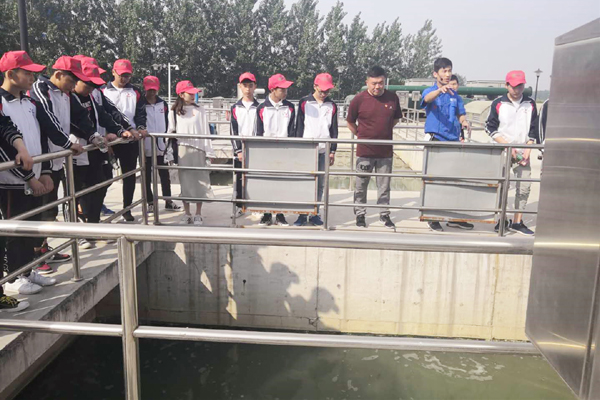 “這些臟水都是哪來的呀?”“水這么臟,怎么才能處理好呢?”“每天都有這么多臟水嗎?”——學生們充滿好奇地問著。五河華騏副經理陳龍帶領同學們參觀了進水泵房、高效沉淀池,曝氣生物濾池、消毒池以及清水池,并通過生動有趣的講解讓學生們了解污水廠是怎樣讓污水化濁為清。