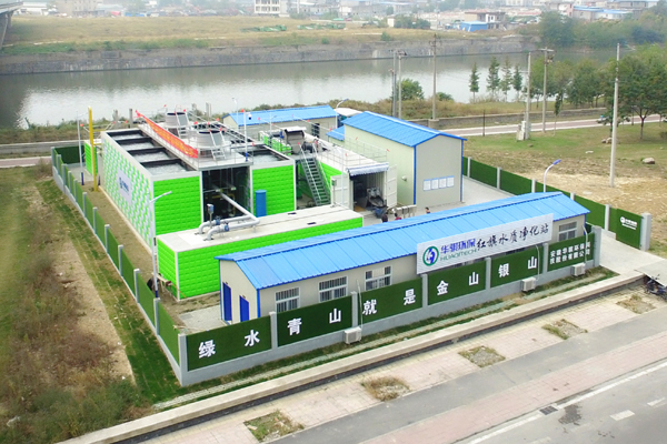 合肥市南淝河流域應急污水處理服務紅旗泵站位于上海路與濱河路交口西南角,工程占地約1230㎡,設計處理能力5000m3/d,采用我司研發的Rapid-Move黑臭水體旁路處理系統——“魔方磁(磁混凝系統)+魔方尊(BAF系統)”組合工藝產品。進水從柳蔭塘路下方自流箱涵末端取水,當水量不足時,從紅旗排澇泵站進水前池泵提取水或濱河路污水管網泵提取水,出水通過管道接入紅旗排澇泵站出水箱涵,出水達到地表準IV類水標準。