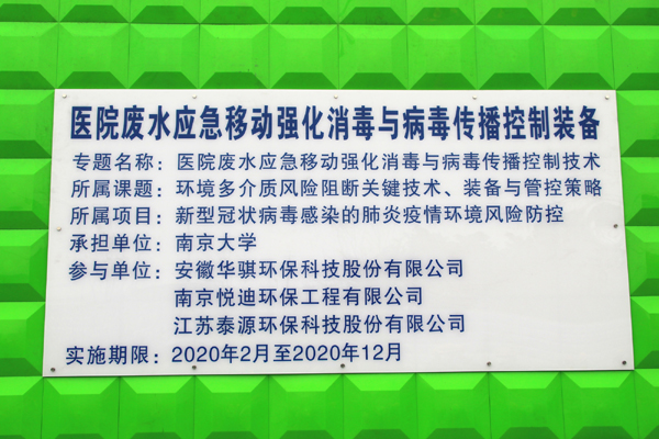 專題概況:由國家科學技術部、中國工程院立項的“新型冠狀病毒感染的肺炎疫情環境風險防控”之“醫院廢水應急移動強化消毒與病毒傳播控制技術”專題,由南京大學牽頭承擔,安徽華騏環保科技股份有限公司參與主要裝備研發和生產。