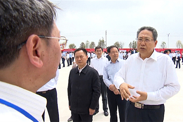 省委書記李錦斌(右一)與華騏環保董事長王健交談