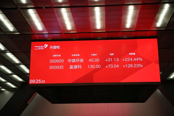 1月20日,國內著名的“環境4S專業服務商”——安徽華騏環保科技股份有限公司 (簡稱“華騏環保”,股票代碼“300929”)在深圳證券交易所創業板成功掛牌上市。本次華騏環保公開發行新股2065萬股,發行價格為13.87元/股,今日收盤價47.59元/股,漲幅達243.11%。