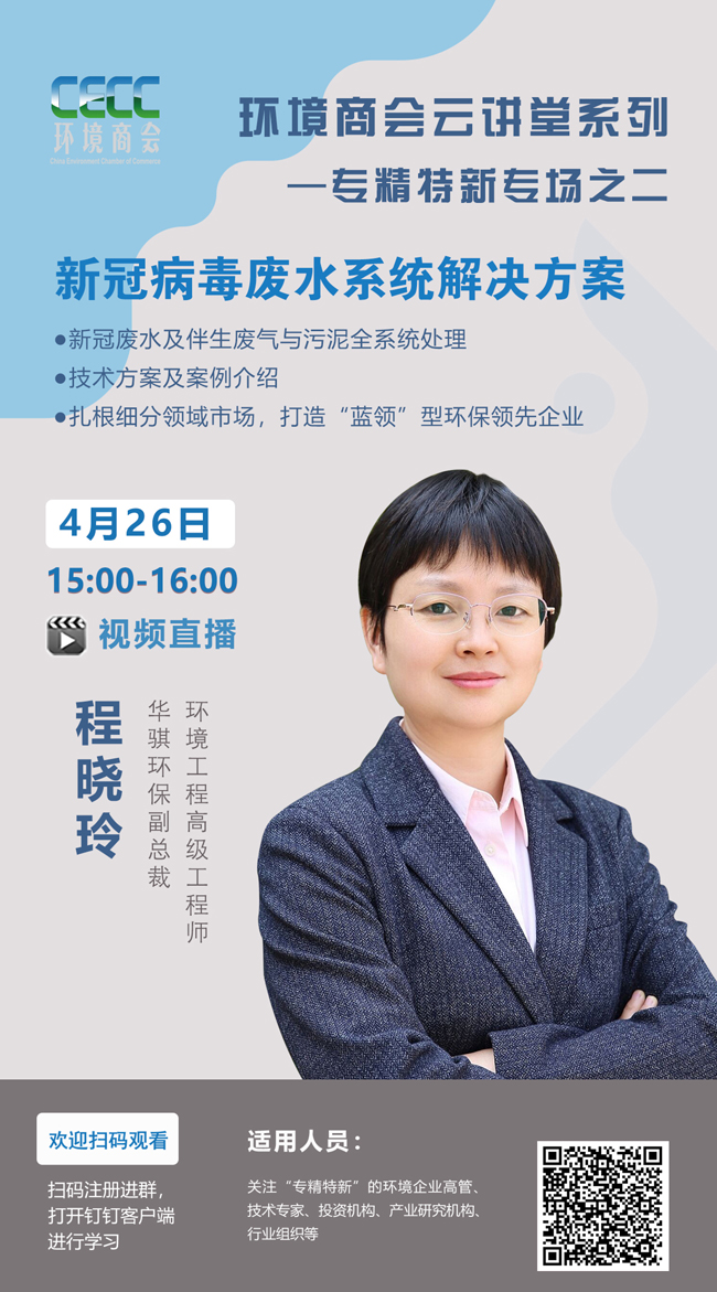 預告:4月26日《新型冠狀病毒廢水系統解決方案》環境商會云講堂開講