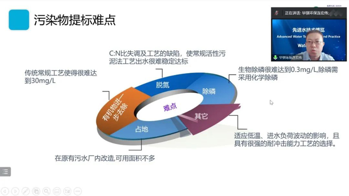 針對污水廠提標改造面臨的難題,連宏偉介紹了華騏環保的系統解決方案: