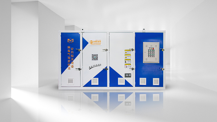④ 病毒富集、定向消殺、除臭過程:除濕后的廢氣進入定向消殺除臭模塊,病毒被定向狙擊消殺,惡臭被分解消除。具體地: