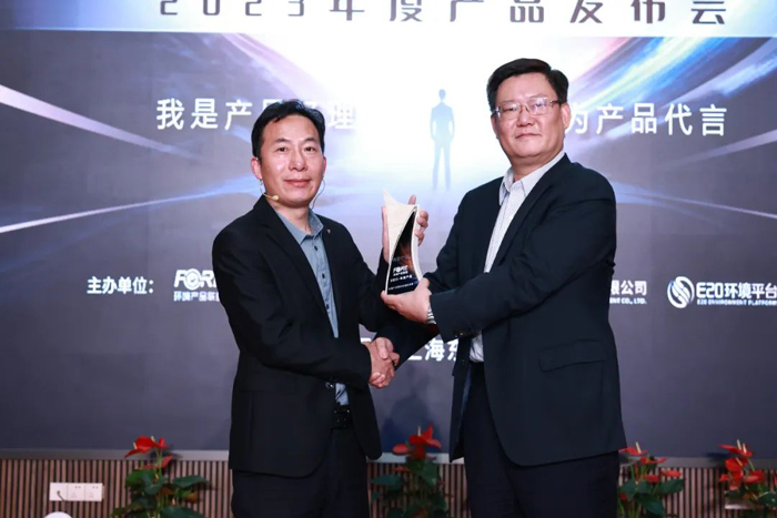 中信環境技術投資(中國)有限公司副總裁羅偉為“魔方智水”頒發環境產品領跑者國際聯盟2023年度產品獎杯。羅偉表示,技術產品化,并不一定就是要多掙錢,而是可以為社會提供更多更有效率的產品,更有價值的服務。作為環保裝備領軍企業,華騏環保將工程思維轉變為產品思維,對技術創新進行了產品化、裝備化升級,并以魔方的形式,發布了一系列產品,針對性地提出了多維全場景產品級的解決方案,體現出了自己對行業產業升級的一份貢獻。