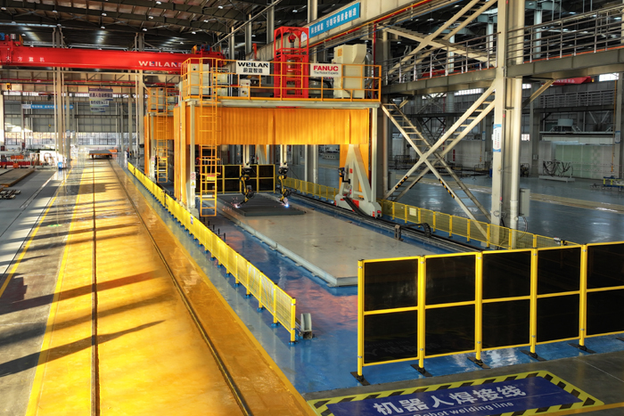 蔚藍智造建有智能化原材料預處理線、智能數控下料線、材料冷加工線智能化模壓線、機器人自動焊接線等,并融合ERP、MRP、SRM管理系統,成為數字化、智能化的高端智能裝備生產基地,是推動智能裝備制造創新發展的新質生產力。