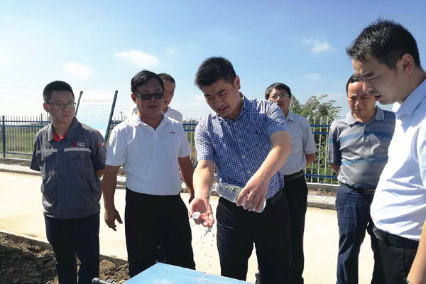 和縣縣委書記戴瑞(前排左二)視察功橋鎮污水處理站今日上午9點,和縣縣委書記戴瑞、副縣長張宏明及和縣城鄉建設指揮部辦公室、和縣環保局等領導一行蒞臨華騏環保功橋鎮污水…